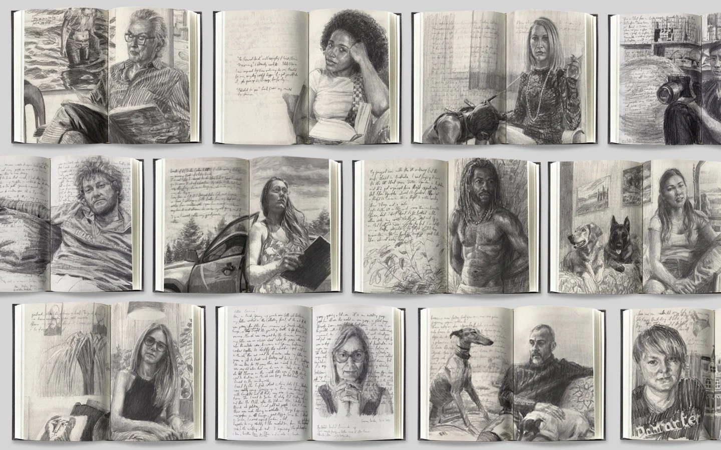 Editing and layout of books featuring her works (image: pandemic portraits, a project of stories and paintings she created during the pandemic to connect with people from their homes and tell each of the stories that were then confined).